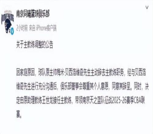 虽然新赛季还没有正式开打,不过已经有球队进行换帅了,这支球队就是同曦男篮。据同曦男篮发布官宣,贝西洛维奇因为家庭原因辞去球队主教练的职务,助教王世龙成为球队的新主帅。据直播吧透露,贝西洛维奇离队的原因是因为同曦男篮在俱乐部杯比赛中的表现不好,球队管理层和他沟通,希望他能够改变球队的现状。不过贝帅表示目前球队已经失控,部分球员根本就不听他的战术安排,贝帅要求裁掉不听话的球员,但被球队管理层拒绝。随后双方再次沟通,贝帅依旧无法解决问题,最终只能下课。