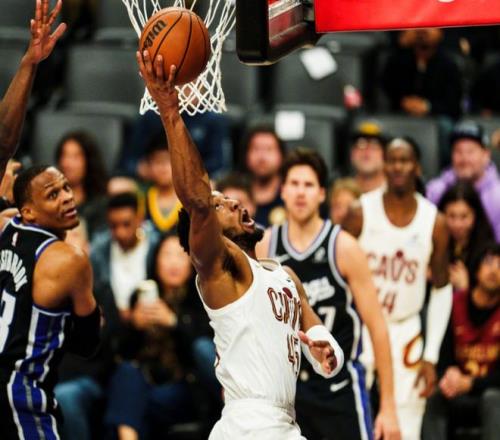 中段哈登再中撤步三分,威少立刻回应追身三分。此后德罗赞带队反超比分,阿伦弹无虚发,威少再中三分球。后半段国王拉开两位数分差,哈登上篮止血,米切尔连续得分,双方再度陷入拉锯战,三节打完,骑士93-96。决战第四节,威少带队依旧保持微弱领先。中段哈登回来,联合阿伦反超比分,国王这边卡特和克利福德打出一波10-0。危急时刻阿伦罚球+哈登借掩护干拔三分,随后米切尔喂饼哈登再中三分!此后米切尔又连续单打强攻,威少连续失误,德罗赞三分追平!